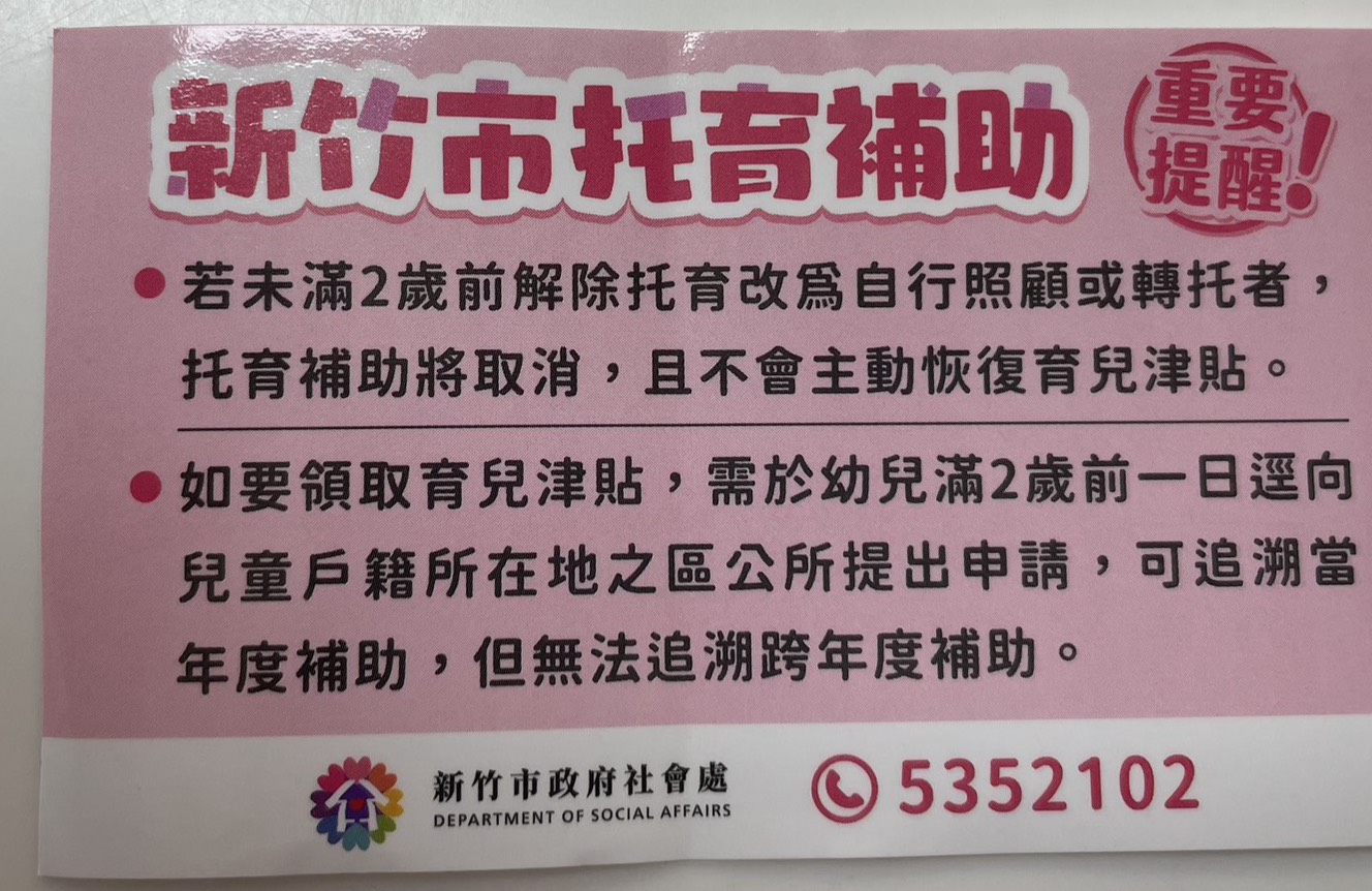 配合社會處轉達"新竹市托育補助"重要訊息